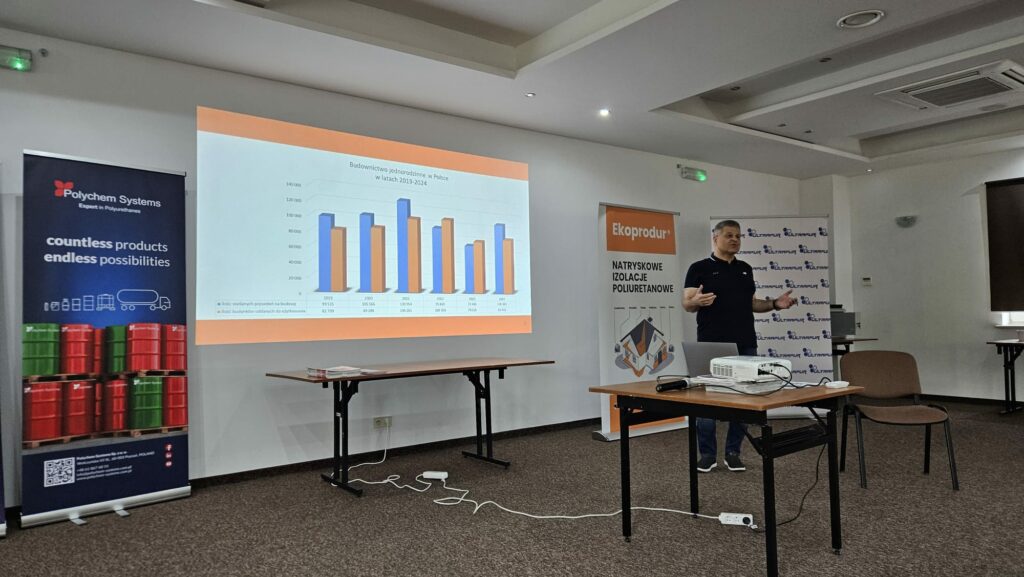 Ostatnie wystąpienie należało do Piotra Grześkowiaka z Polychem Systems, który zaprezentował wykład pt. ,,Normy, według których dokonuje się oceny parametrów materiałów izolacyjnych ‘’. Szczególną uwagę poświęcił normie PN-EN 14315-1:2013, podkreślając znaczenie przestrzegania rygorów procesowych i technologicznych.